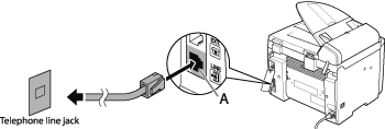 Connect the supplied telephone cable to the telephone line jack (A) on the back side of the machine and the wall jack.