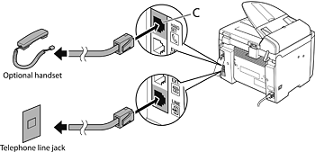 If you have the optional handset, connect the cable to the handset jack (C) on the back side of machine.