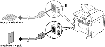 If you want to connect your own external telephone or telephone with built-in answering machine, connect it to external device jack (B) on the back side of machine.