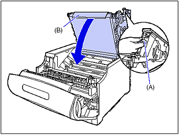 If you close the top cover forcefully, the ITB unit cover (B) may not move back to the original position, and this may result in damage to the printer.