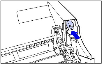 " to lock the drum cartridge.Slide the lock release lever until the triangular mark on the lock release lever aligns with the triangular mark on the label.
