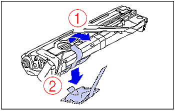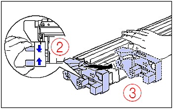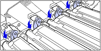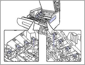 If the levers are not in the proper position, the drum cartridges cannot be installed. Raise the levers to the proper position as shown in the figure.