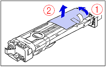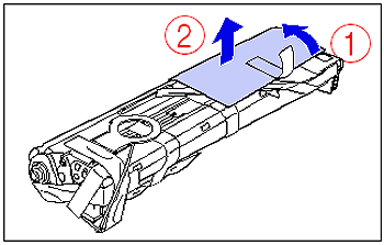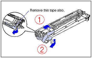 - Pull out the sealing tape completely from the drum cartridge. If any tape remains in the drum cartridge, this may result in poor print quality.