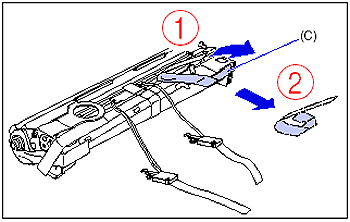 3-B-5. Remove the packing material attached with tape (C) (1 piece) shown in the figure.