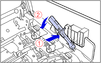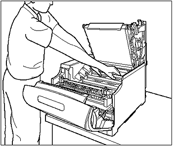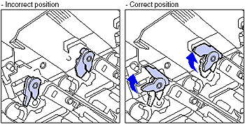 If the levers are not in the proper position, the drum cartridges cannot be installed. Raise the levers to the proper position as shown in the figure.