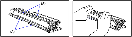 - When handling a drum cartridge, hold the blue tabs (A) properly as shown in the figure. Do not place it vertically or upside-down.