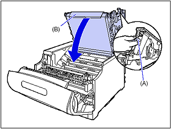 If you close the top cover forcefully, the ITB unit cover (B) may not move back to the original position, and this may result in damage to the printer.