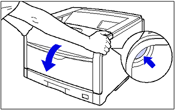 Before opening the front cover, make sure that the multi-purpose tray and the paper cassette of the printer are closed.
