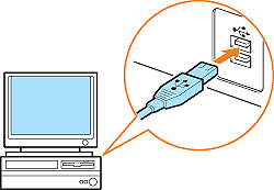 3. Connect the A-type (flat) end of the USB cable to the USB port on the computer.