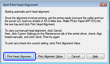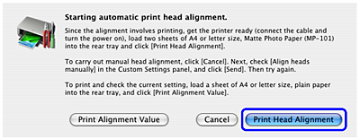 - If results of Automatic Print Head Alignment are not satisfactory, see [Manual Print Head Alignment].