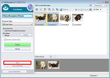 1.Select the checkboxes of the images you want to save, then click Save.
