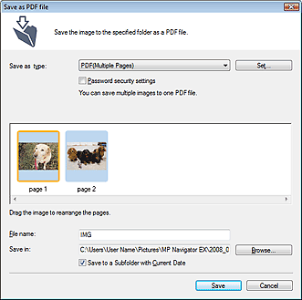 Save images scanned with MP Navigator EX as PDF files.