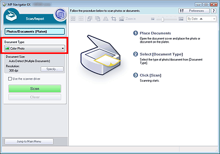 1.Start MP Navigator EX and open the Navigation Mode screen.