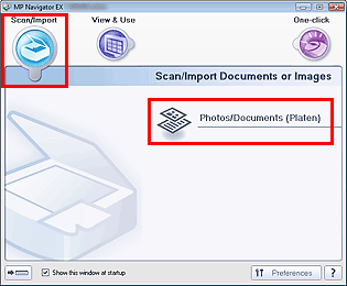 2.Point to Scan/Import and click Photos/Documents (Platen).