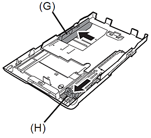 5.Slide the Paper Guide (H) to align with the mark of paper size.
