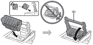 5. Tilt the Print Head and set it in place. Lower the Print Head Lock Lever (D) completely.