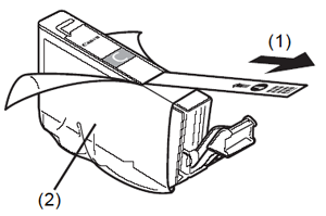 2.While pressing down with your left thumb, twist off the orange protective cap (A) located on the bottom of the ink tank .
