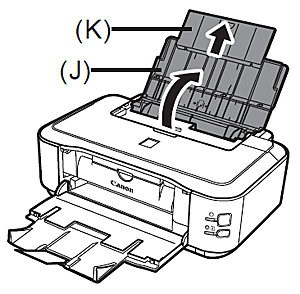 Open the Rear Tray Cover (J), and pull up the Paper Support (K).