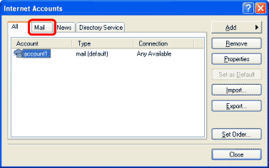 2. On the [Tools] menu, select [Account] to open the [Internet Account] dialog box.