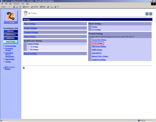 <Network Settings> of <System Management Settings> (from the Additional Functions screen) on the
