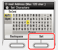 Select <Set> by pressing the right Any key to complete the entry and return to the previous screen.
