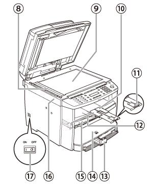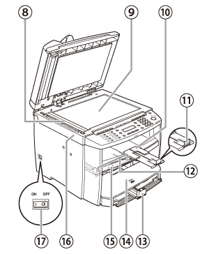 | 11 | Paper stopper | Prevents the paper from falling off the output tray. Open the paper stopper from its original position for A4/LTR paper. For LGL paper, pull out the output tray extension first, and then open the paper stopper. |