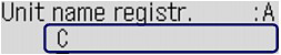 - Here describes the unit name registration. To display the Unit name registr. screen, see "Registering Your Fax/Telephone Number and Name"