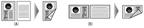 You can copy two original pages (A) (B) onto a single sheet of paper (C) by reducing each image.
