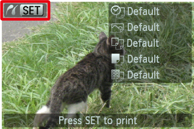Make sure that the [SET] icon is displayed in the upper left corner of the LCD monitor, and then press the camera's <FUNC./SET> (