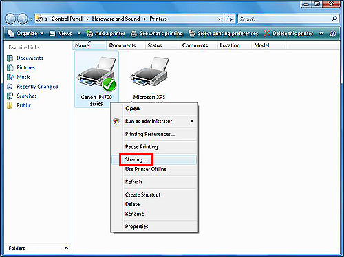 1-2. Right-click the Canon iP4700 Series icon, then select "Sharing".
