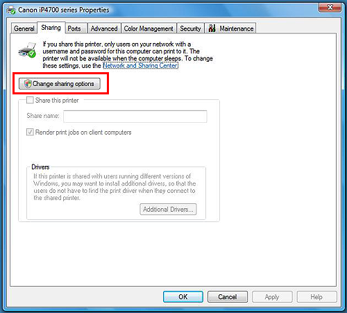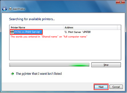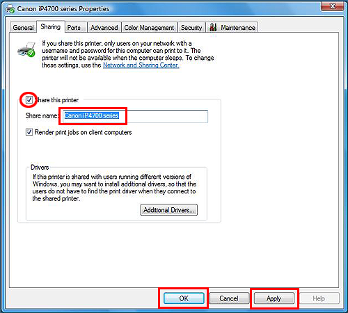 Canon iP4700 Series is used as an example of the printer to be shared.