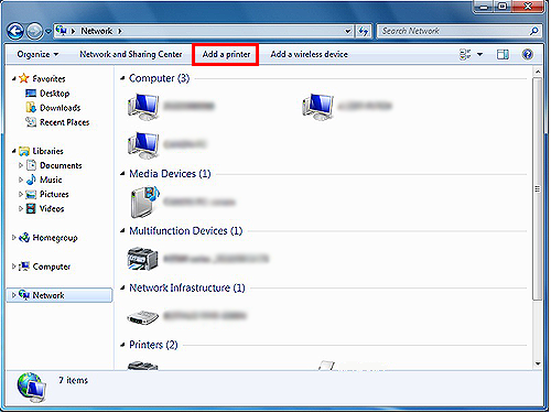 3-1. From the Start menu, select "Computer", "Network", then "Add a printer".