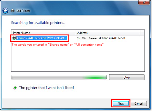 3-3. Click the icon of the printer shared on the print server, click "Next".