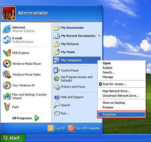 2-1. From the Start menu, right-click "My Computer", then click "Properties".