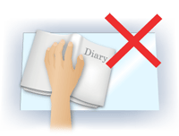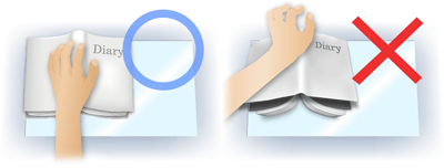- Do not place items that weigh 4.4 lbs (2.0 kg) or more on the Platen. Also, do not press on the document with a force exceeding 4.4 lbs (2.0 kg). If you press heavily, the scanner may not work correctly or you might break the glass.