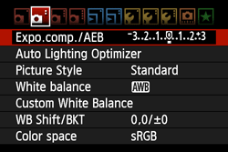 ] tab, select [Expo. comp./AEB], then press the <SET> button.