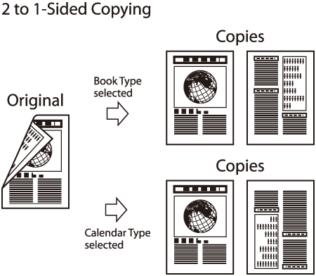 - <Calendar Type Copy>: The front and back sides of the copy will have the opposite top-bottom orientation.