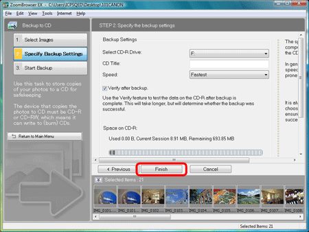Saving images to CD-R/CD-RW discs (ZoomBrowser EX Ver6.7)