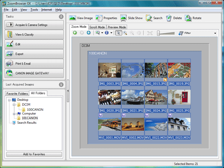 )> [All Programs] or [Programs] > [Canon Utilities] > [ZoomBrowser EX] and select [ZoomBrowser EX] to start [ZoomBrowser EX].