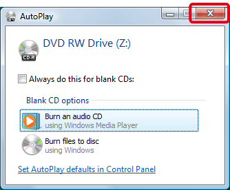 1. Place a CD-R/RW disc in the CD-R/RW drive. If a window like the one below appears, click [