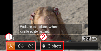 - If a smile is not detected, facing the camera and smiling with the mouth open to show some teeth will make it easier for the camera to detect the smile. - You should switch to another mode when you finish shooting, or the camera will continue taking shots each time the camera detects a smile. - You can also shoot by pressing the shutter button. |