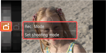 Operate the <directional buttons> up or down to select [Rec. Mode] (If no changes have been made so far, [Smart Shutter] (