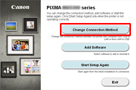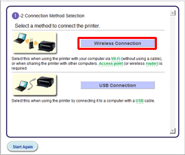 In order to use the printer in a wireless connection even after the USB connection is completed, follow the procedures below to perform the wireless setup again.