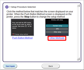 To use the printer in a wireless connection, select the wireless setup method you prefer.