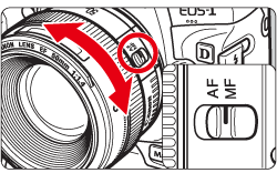 - If the focus is way off, face detection will not be possible. If the lens enables manual focusing even while the lens focus switch is set to <AF>, turn the focusing ring to attain rough focus. The face will then be detected and [ [