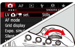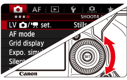 6. Turn the <Quick Control Dial> to select [Stills] or [Movies], and then press the <SET> button.