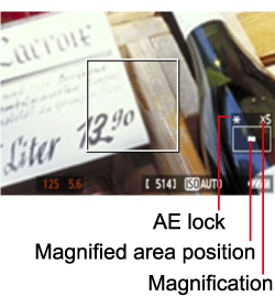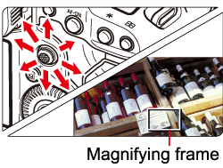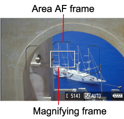 >(Multi-controller) to move the magnifying frame to the position where you want to focus.