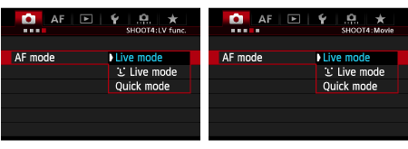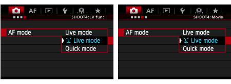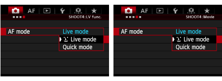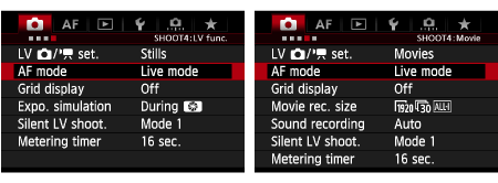 This page describes how to change the focus mode for Live View shooting. For details on how to perform easy Live View shooting in default settings, please refer to the related information.