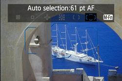 - If the AF area selection mode is set to "61-point automatic selection AF", the Area AF frame will be displayed.