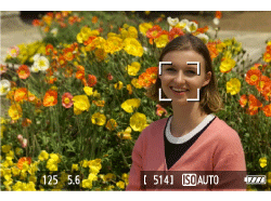 14. Press the shutter button halfway and the camera will focus the face covered by the [